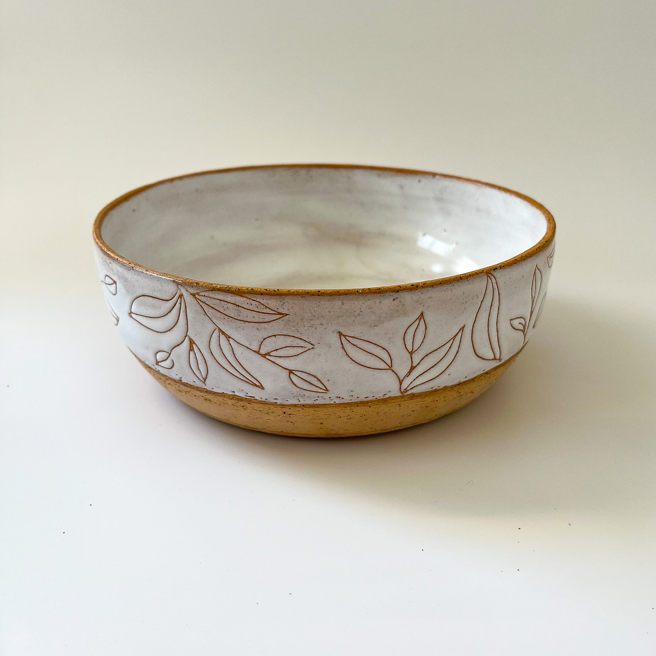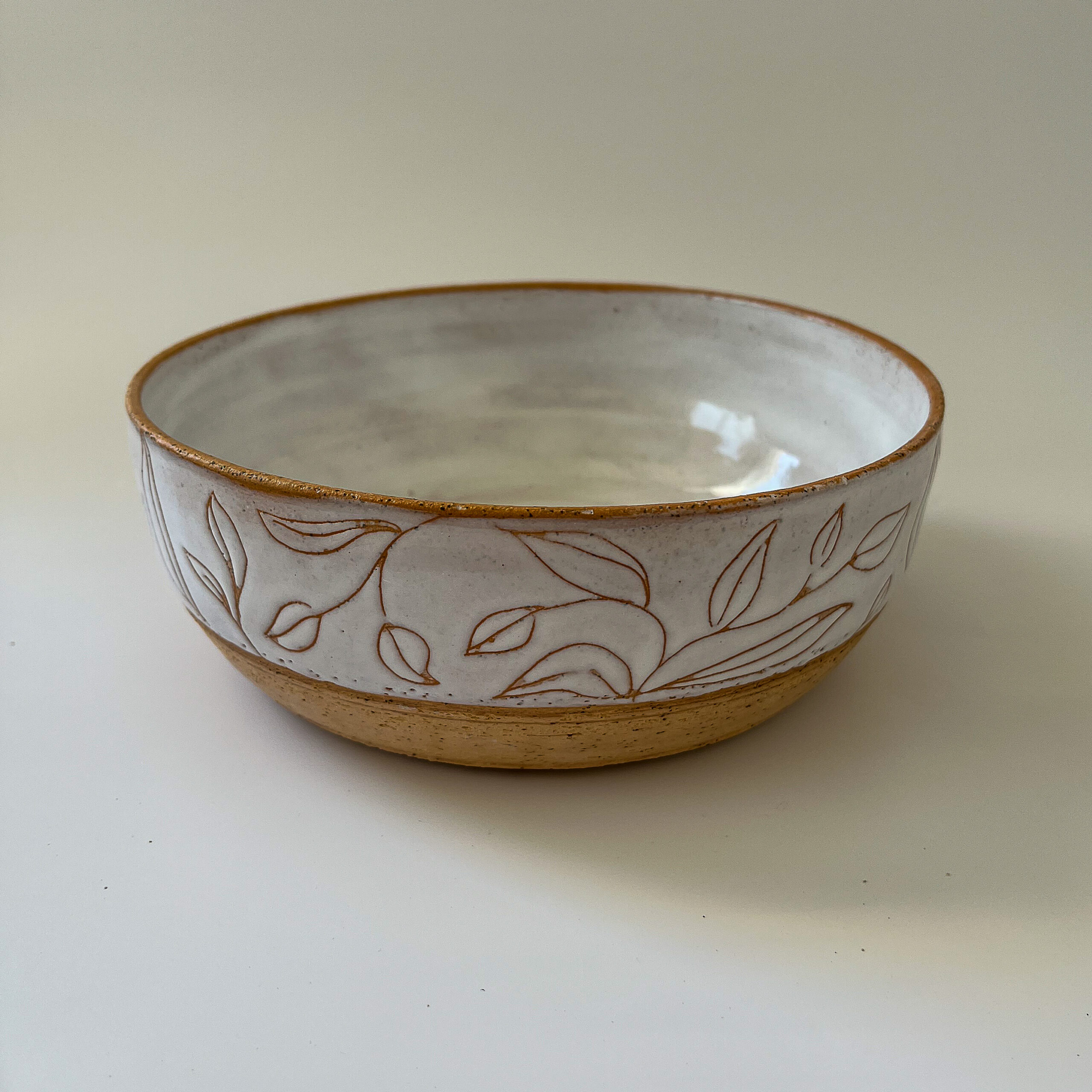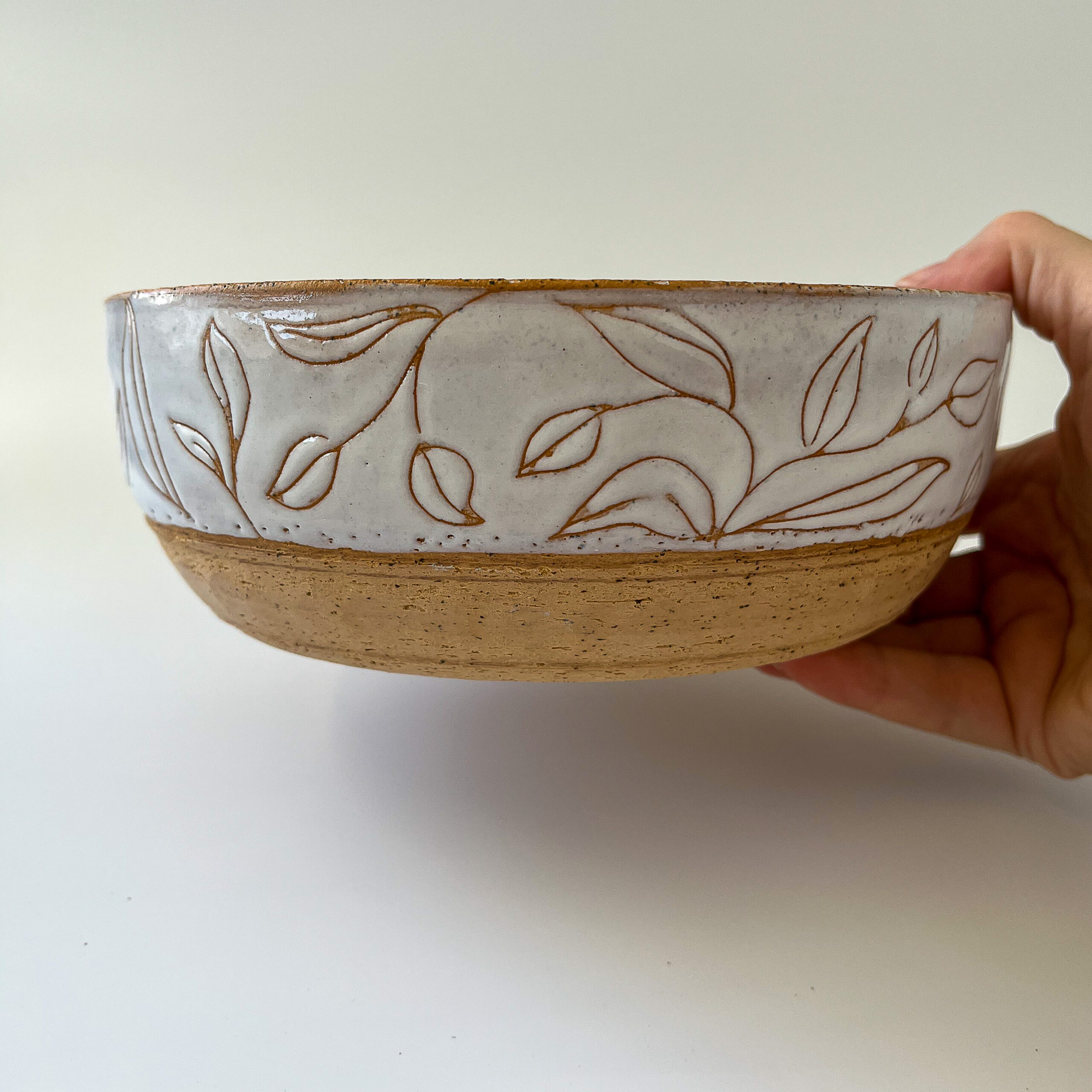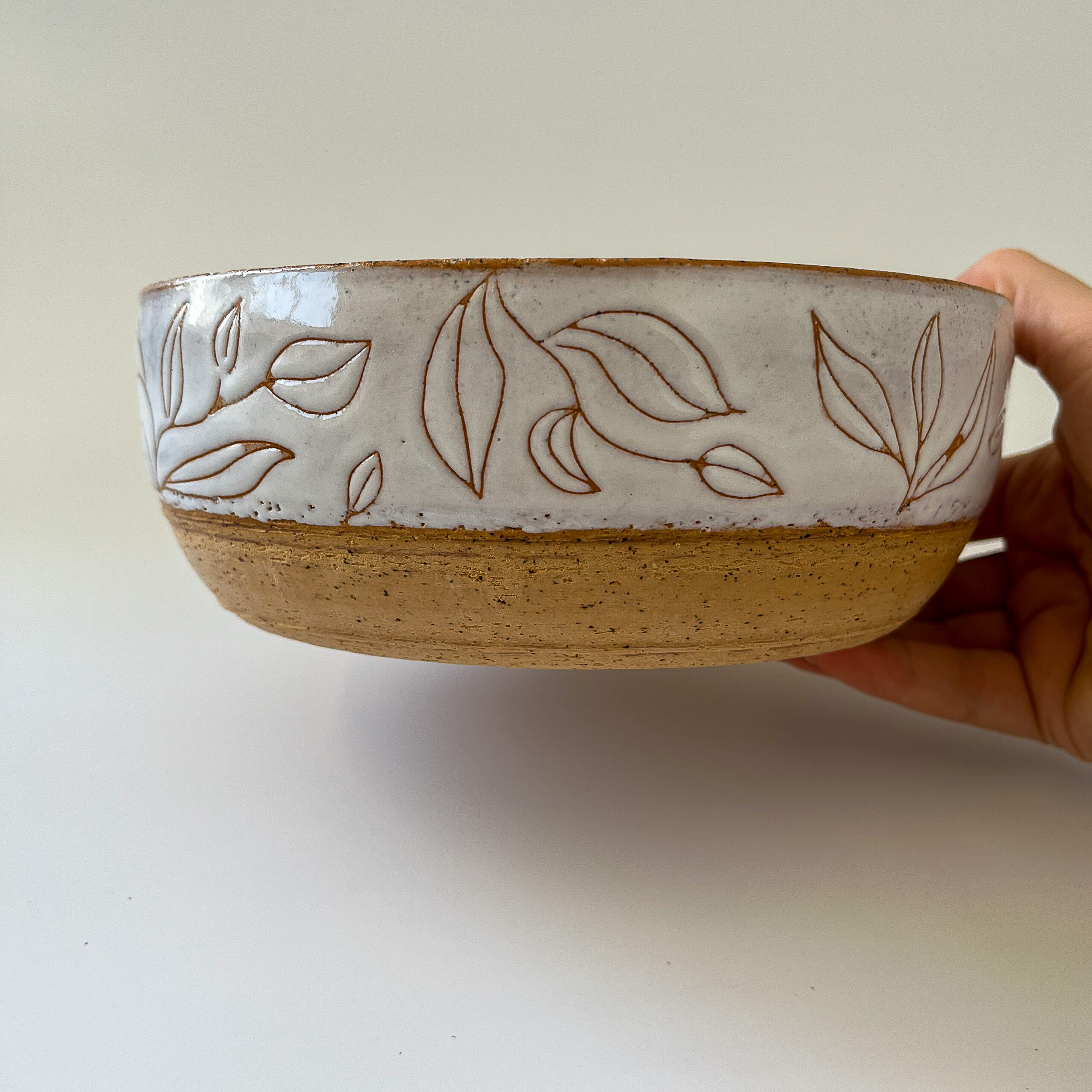 זיגוג לבן וחריטות עלים, חימר מנוקד עדין